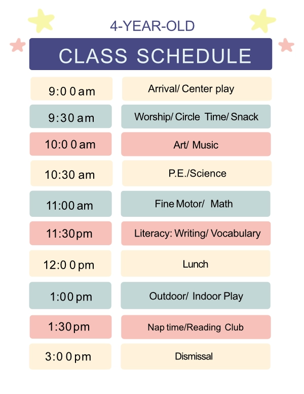 Comprehensive program for 4-year-olds prepares them for kindergarten through a stimulating and supportive environment, promoting critical thinking, and social skills.